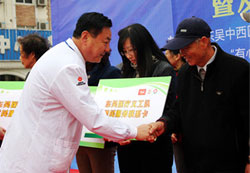 东吴医疗义工队为居民代表颁发服务联系卡,医护人员免费居民义诊