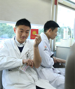 即使刚抽完血不方便,也要向我们展示他的献血证