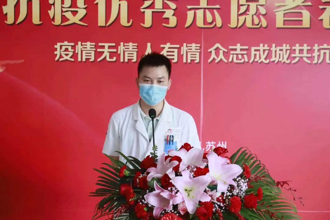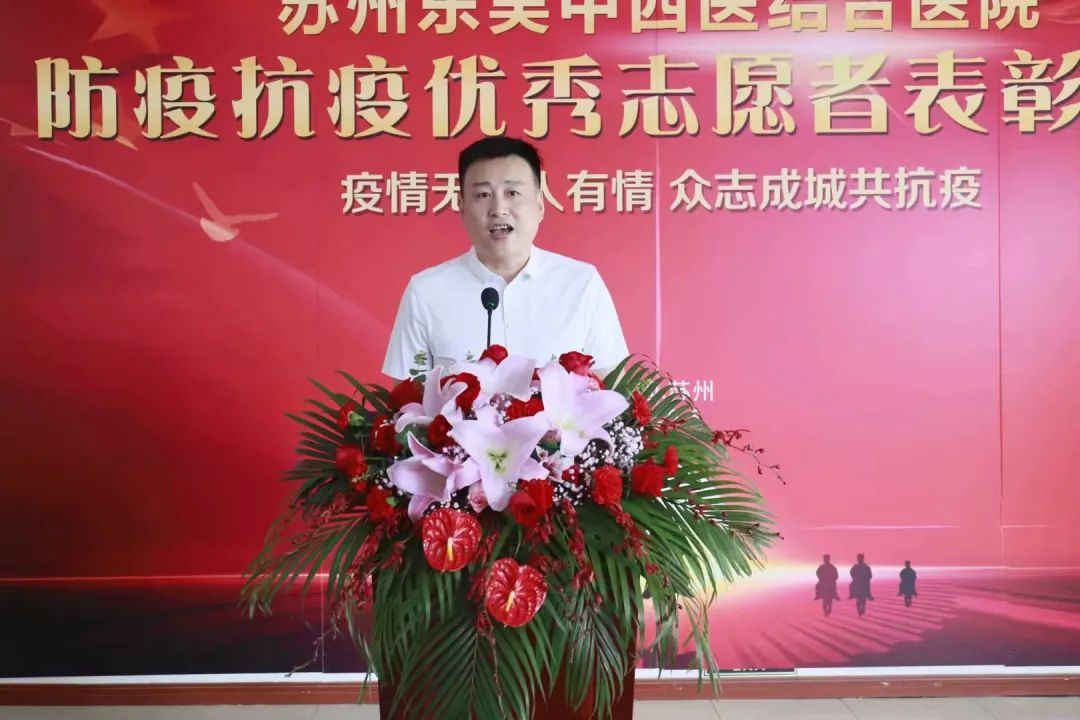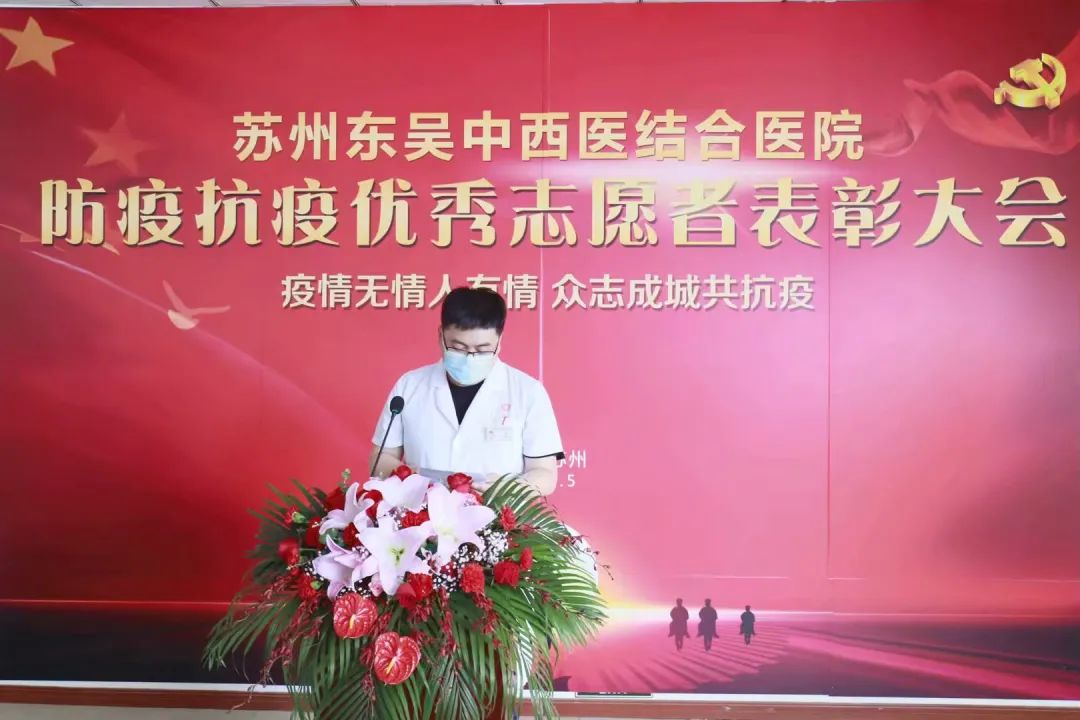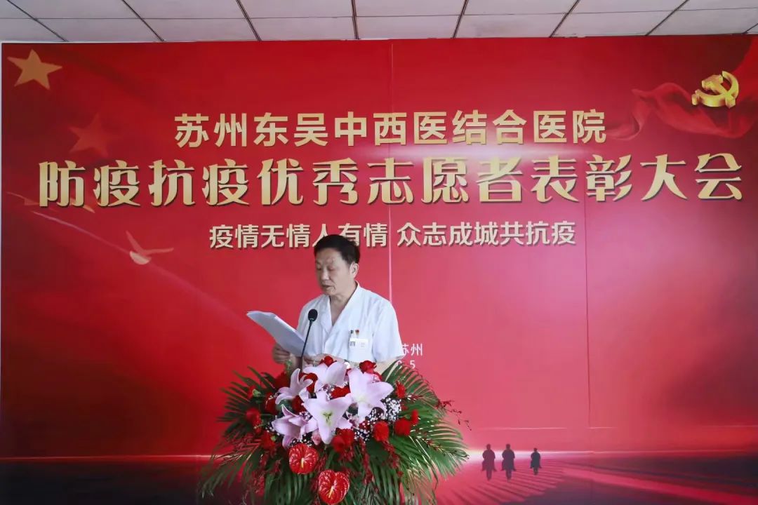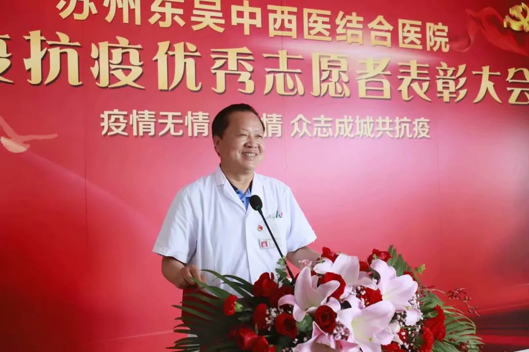 中共苏州东吴中西医结合医院党支部书记林志彬发起并主持此次防疫抗疫优秀志愿者表彰大会
