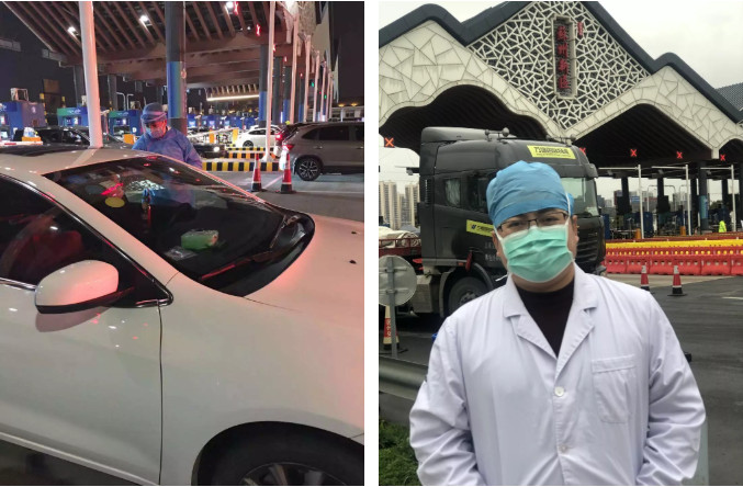 在本次防疫工作中,第一批走上高速路口执勤也是当时环境最危险、坚持天数最多的彭祝松医生,在大年初三那天就接到了医院的这项驻扎高速路口为车内人员检测体温的任务。当时丝毫没有犹豫就答应了,尽管自己家里还有一个女儿,妻子也会担心他的安全,但是作为一个医务工作者,深感自己肩上的责任,也深知有大家稳定了才能有小家的团圆幸福。